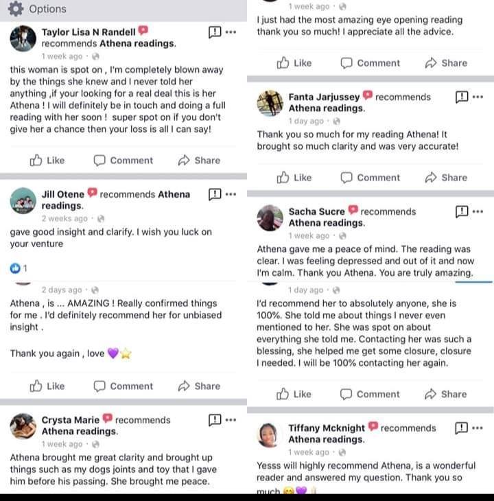 It amazed me how accurate she was it was like she was reading my deepest most private thoughts the things I struggle to talk about…. there were a lot of tears but it was a huge relief....I felt so understood, seen and known by her and her abilities to see me on a soul level.